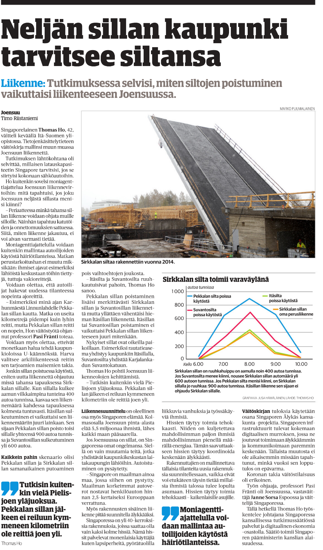- Itäsilta ja Suvantosilta ruuhkautuisivat pahoin, Thomas Ho sanoo.