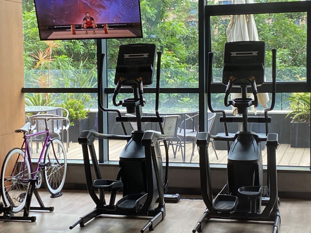 Kuvan kuntosali löytyy Moxy-hotellista ja muista poiketen siellä on myös kuntopyörä, hieman erikoisen näköinen mutta kuntopyörä kuitenkin. En ole päässyt sitä testaamaan.