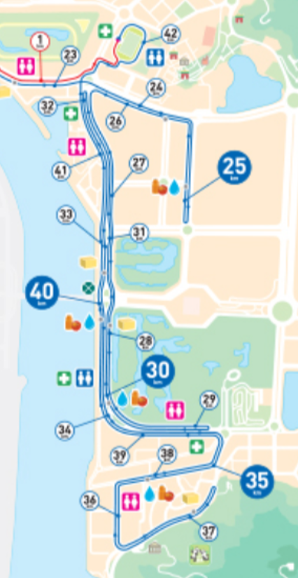 Eka 16 km mentiin pohjoista saarta aamun sarastuksen upeissa maisemissa. Sen jälkeen reitti suuntautui etelään Taipa-saarelle. Toinen puolikas olikin sitten lähestulkoon yhden ja saman kaistoihin jaetun pitkän kadun pätkän kulkemista edes takaisin muutamin koukeroin.