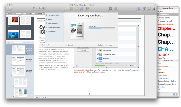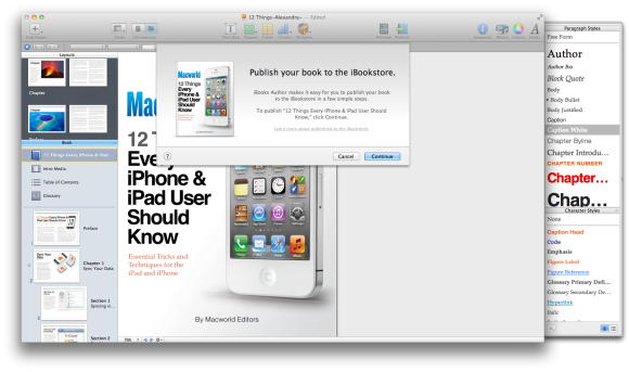 As part of version 2, Apple says, iBooks Author supports an “improved publishing workflow, including automatic sample book creation and pre-publish checking.” Creating a sample book is definitely easier: You can export your project specifically as a sample from the Export menu, or you can go through the Publish option to create a sample from one of your chapters automatically. As for the rest of the program's improved publishing workflow, it still doesn’t do the most important thing: Publish your book. (You have to use iTunes Producer for that.)