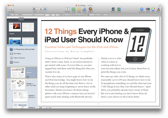 Originally released in early 2012, Apple’s education-themed ebook creation tool took bold steps as the first WYSIWYG program to export an ebook just as its author envisioned it. As I noted in my review of that software , however, the first version of iBooks Author was very much a 1.0 product, with strange omissions and odd workflows for users who didn’t want to build textbooks. Ten months later, an updated version—iBooks Author 2.0 ( Mac App Store )— brings simplified tools, new templates, portrait-only options, and a better publishing workflow to the table. Naturally, I couldn't resist taking the updated program for a spin.
